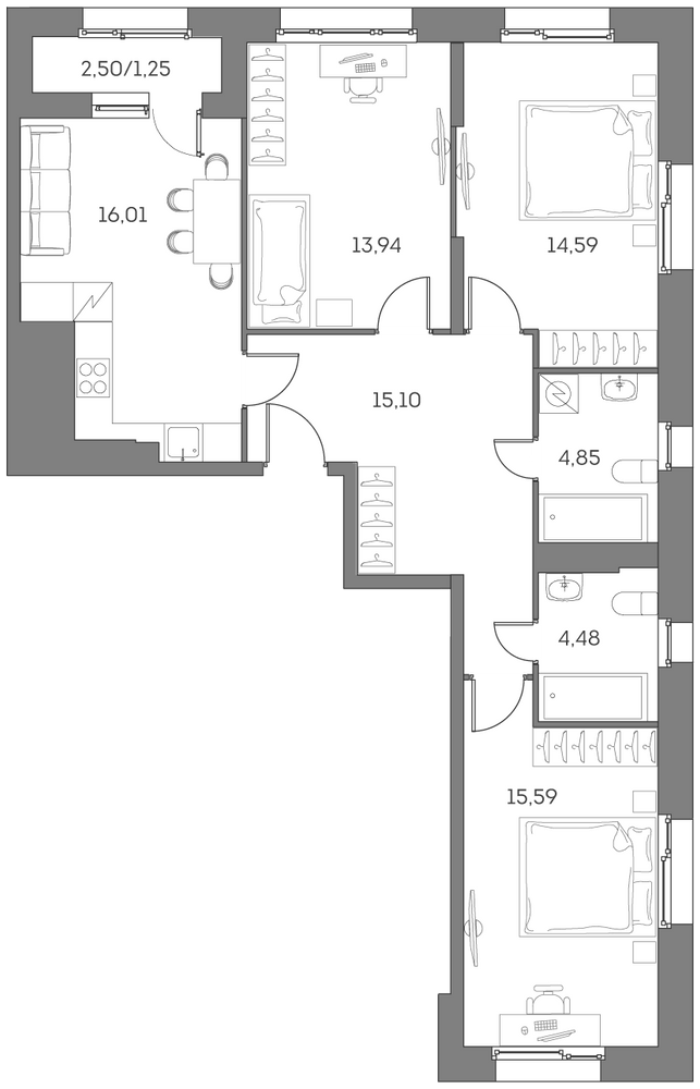 - Лот месяца со скидкой -40%№ 2561 корпус 2 очередь, Секция 1, Этаж 25