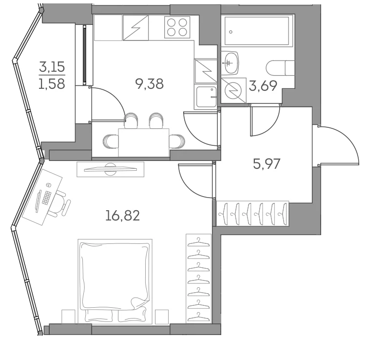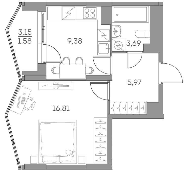 - Скидка 35%2 5 : 2 1 : 1 2 : 2 8№ 10881 корпус 2 очередь, Секция 9, Этаж 26