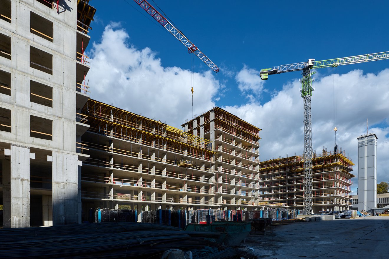 В рамках первого этапа федеральный девелопер завершил устройство монолитных конструкций башни B, аналогичные работы на корпусе A — выполнены на 90%. Продолжаются мероприятия по каменной кладке на трех корпусах. В октябре девелопер приступил к устройству системы отопления и теплоснабжения башни С.